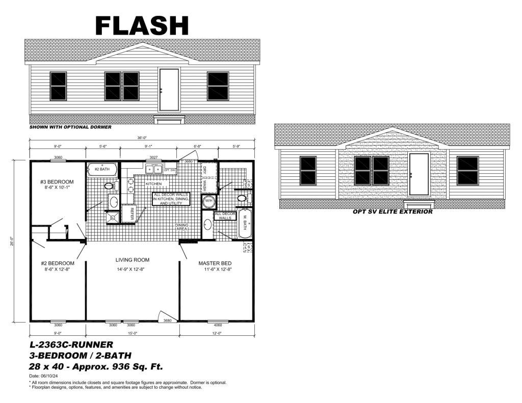 - All room dimensions include closets and square footage figures are approximate. Dormer is optional.